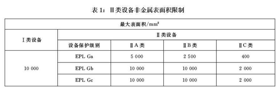 1. In Class II explosive gas environments, when the surface area of non-metallic enclosures of electrical equipment exceeds a certain limit value (as shown in Table 1), the surface resistance of the non-metallic material needs to be tested and verified to ensure that, by selecting materials, the surface resistance meets at least one of the following requirements when measured according to IEC 60079-0 26.13: