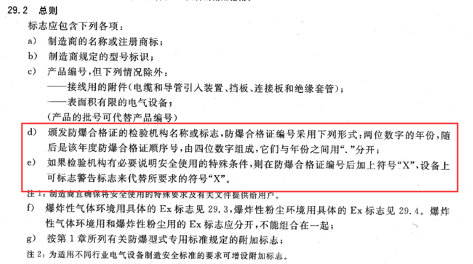 國家防爆標(biāo)準(zhǔn)GB/T3836.1中的對防爆標(biāo)志也有相應(yīng)的規(guī)定。