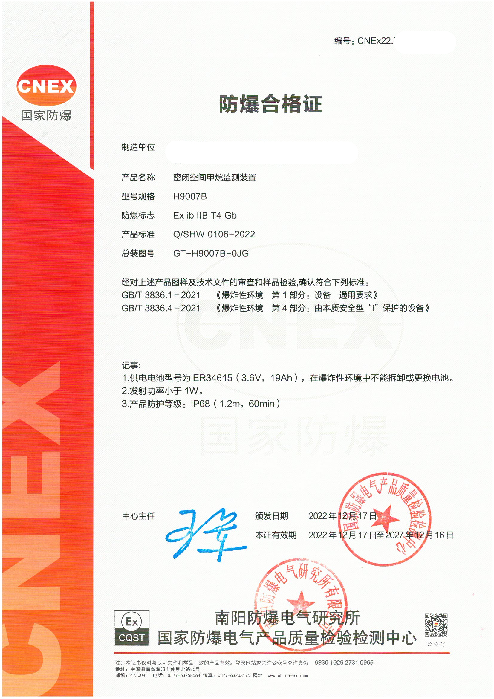 甲烷監(jiān)測裝置辦理本安型防爆合格證標準要求