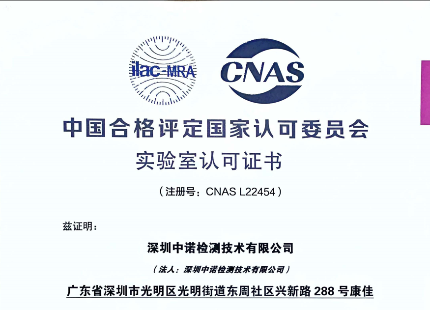 熱烈祝賀深圳中諾檢測(cè)技術(shù)有限公司取得CNAS資質(zhì)證書(shū)!