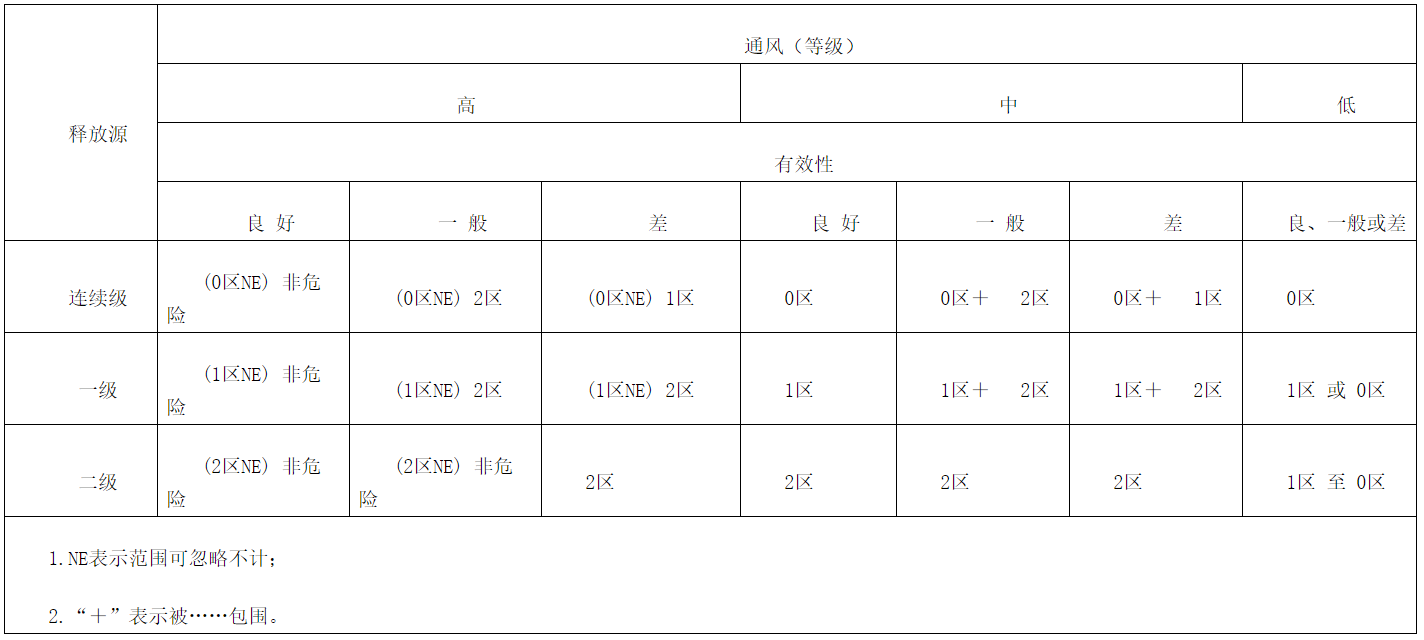 原則上,在沒有任何外界條件影響的情況下,連續(xù)級(jí)釋放源周圍形成0區(qū);第一級(jí)釋放源周圍形成1區(qū);第二級(jí)釋放源周圍形成 2區(qū)。